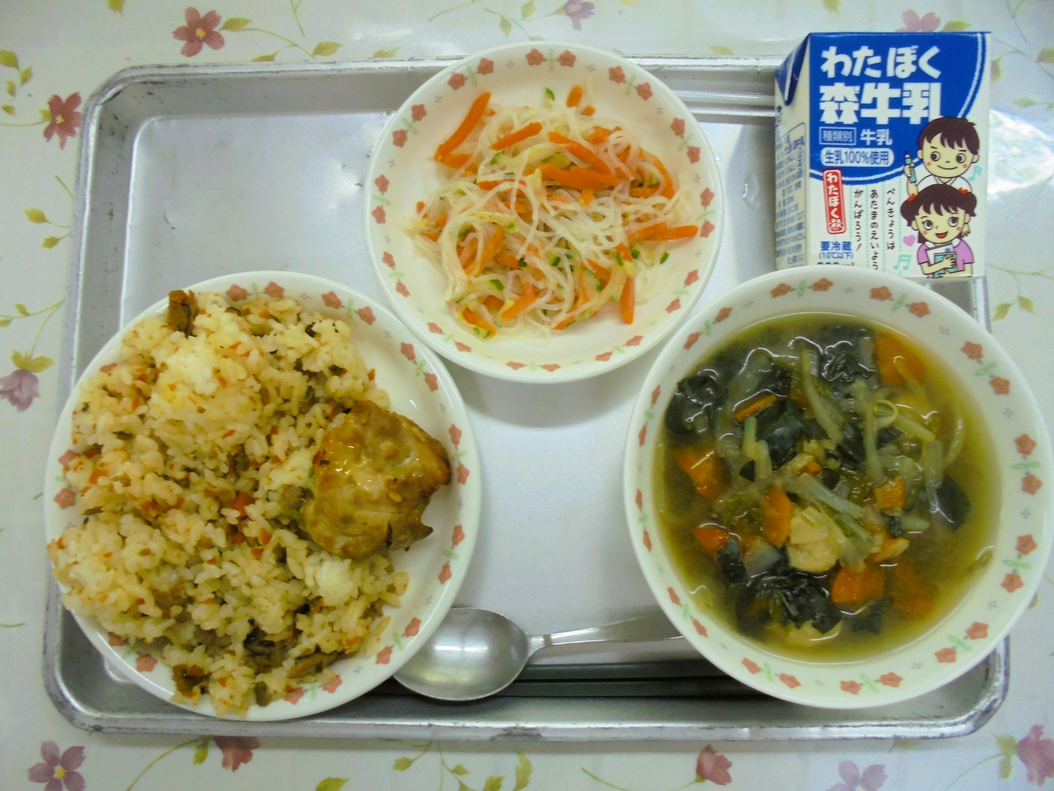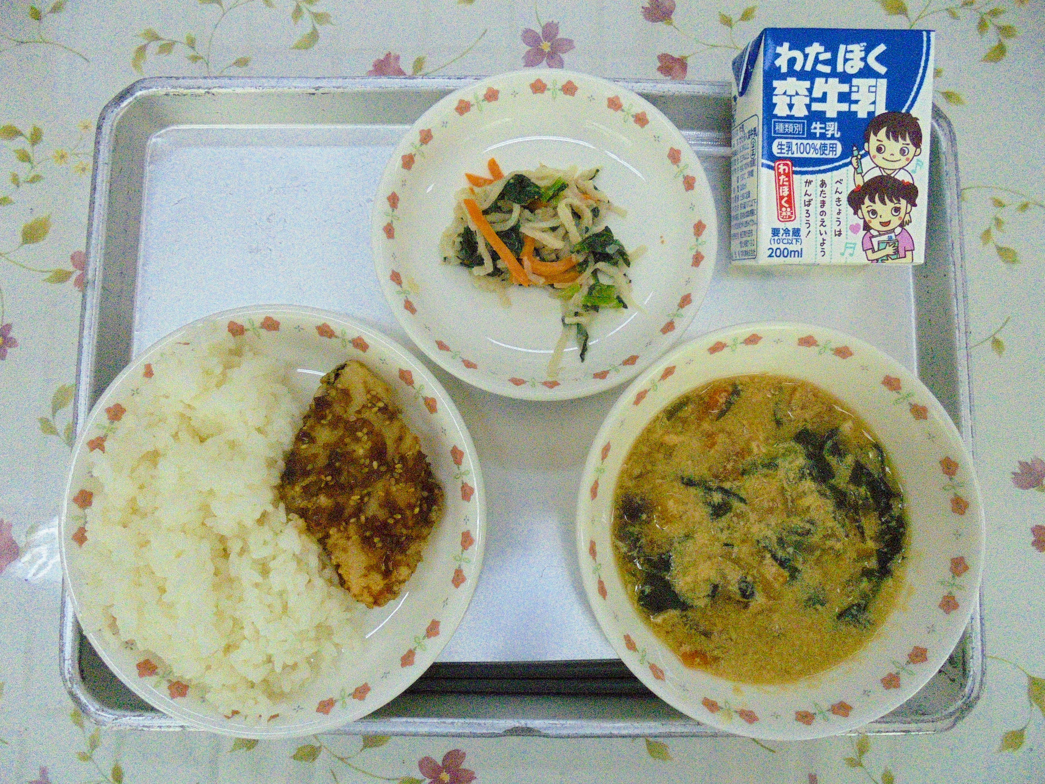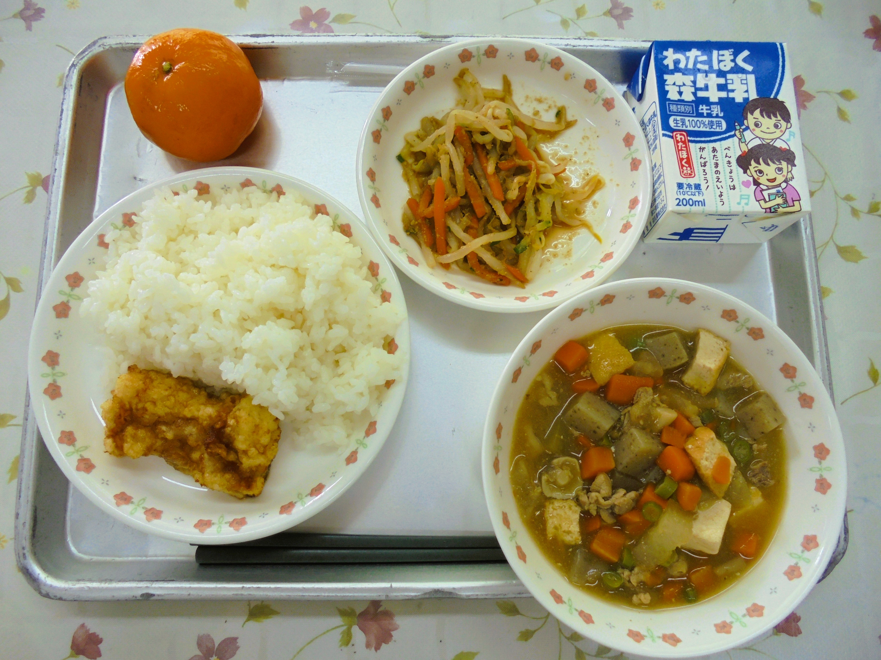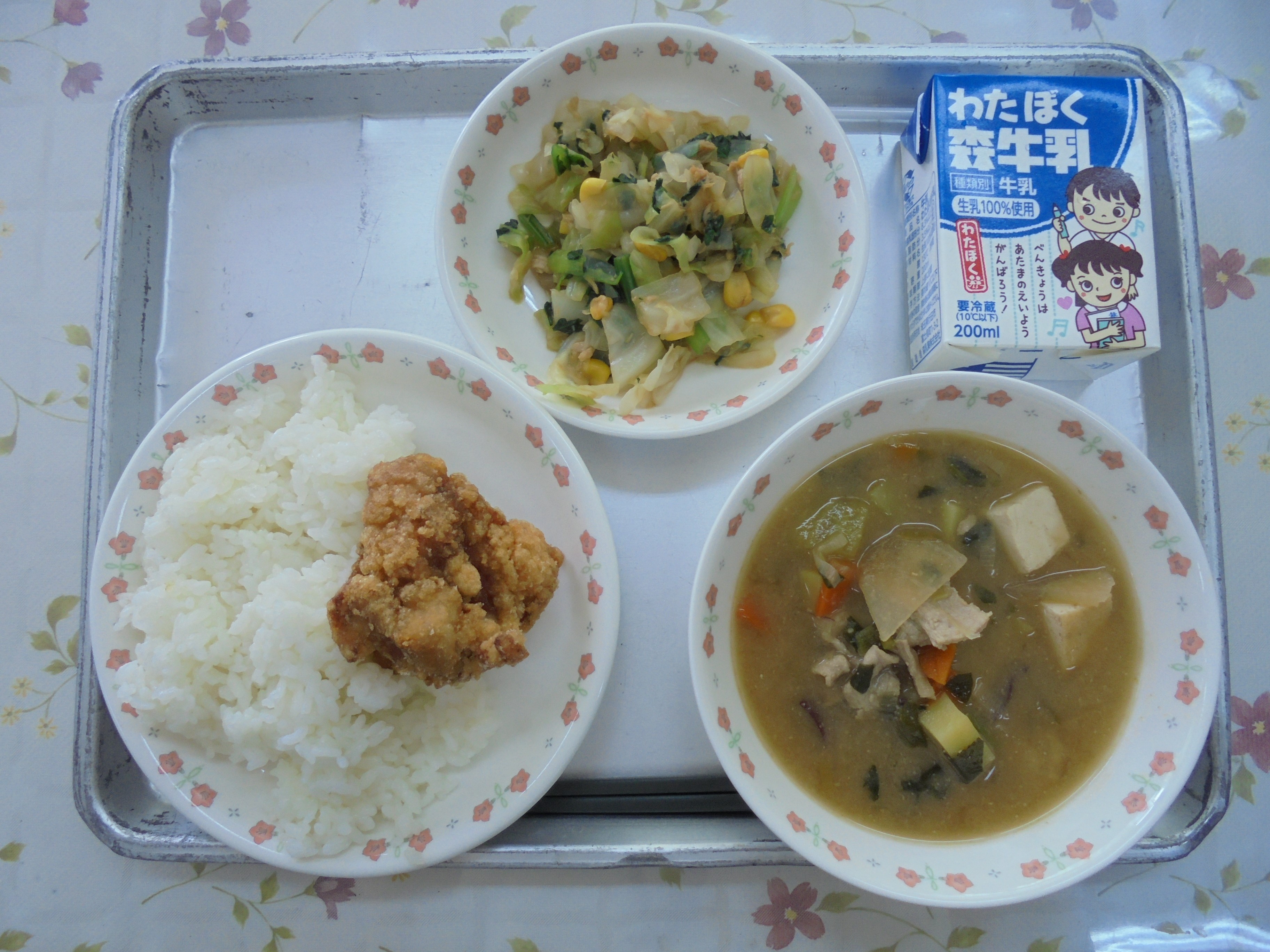 ・牛乳 ・ごはん ・さつまいも汁 ・鶏肉の竜田揚げ ・こまツナあえ |