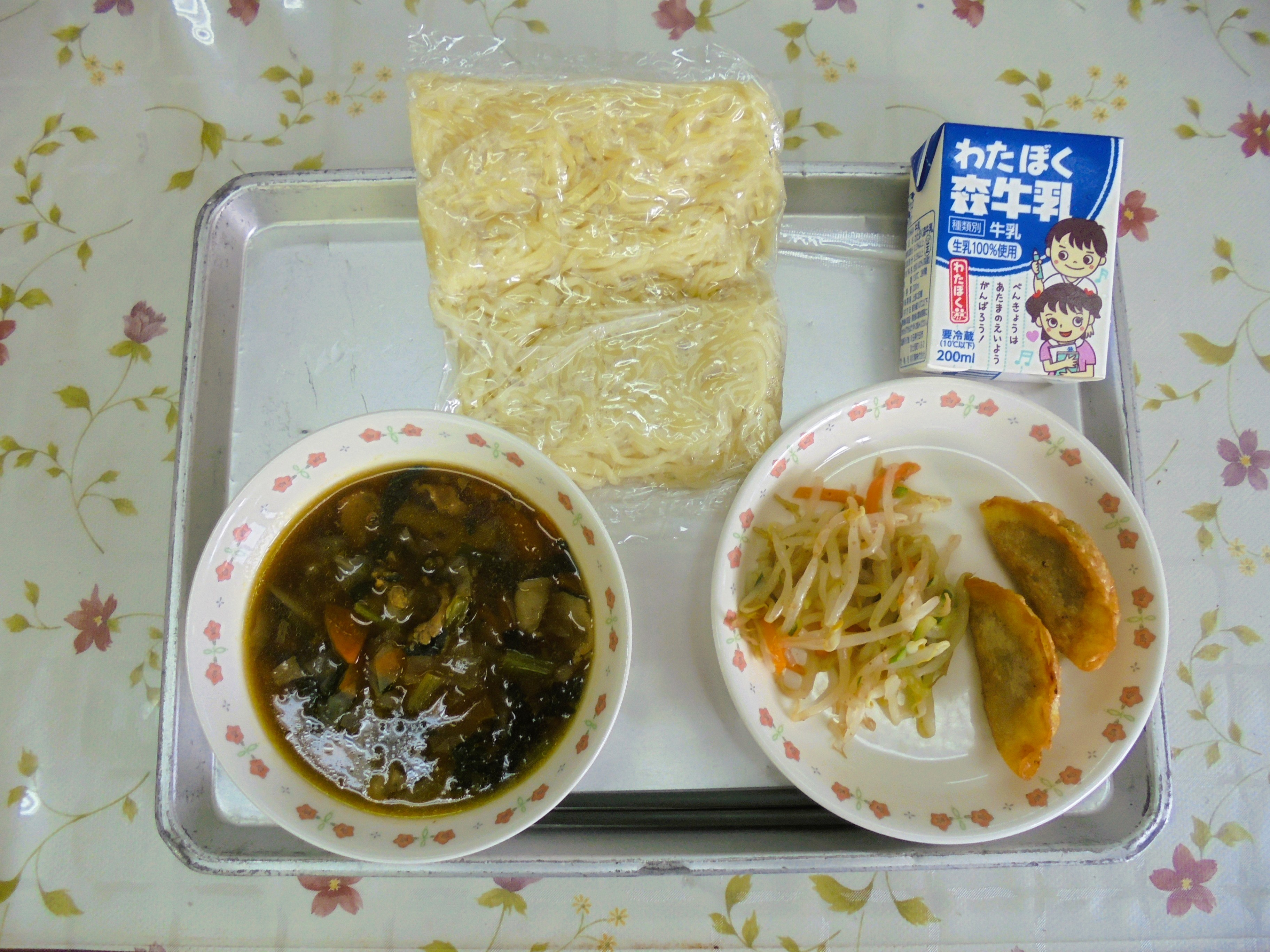 ・牛乳 ・チャンポンめん ・揚げぎょうざ ・もやしときゅうりのサラダ |
