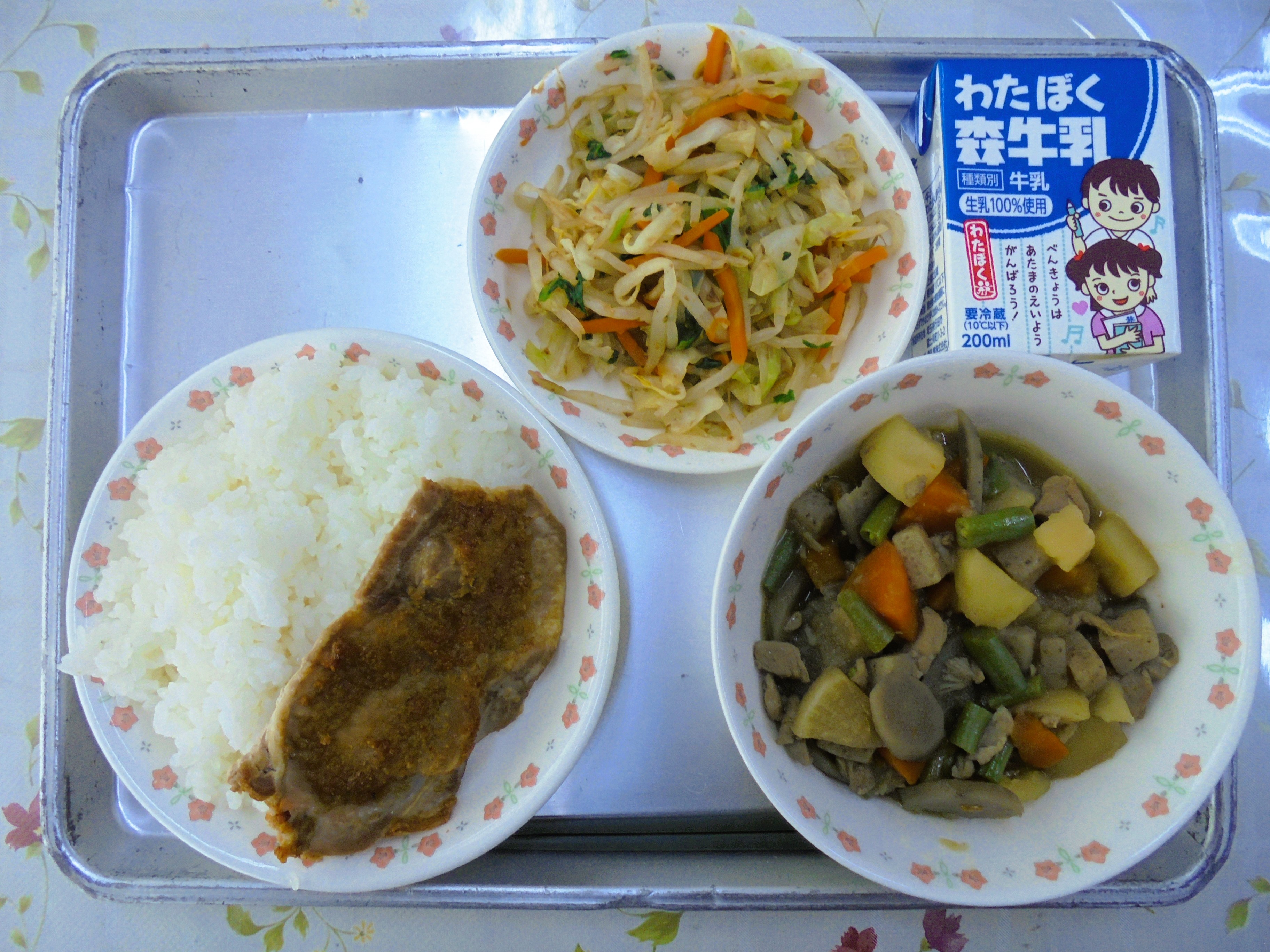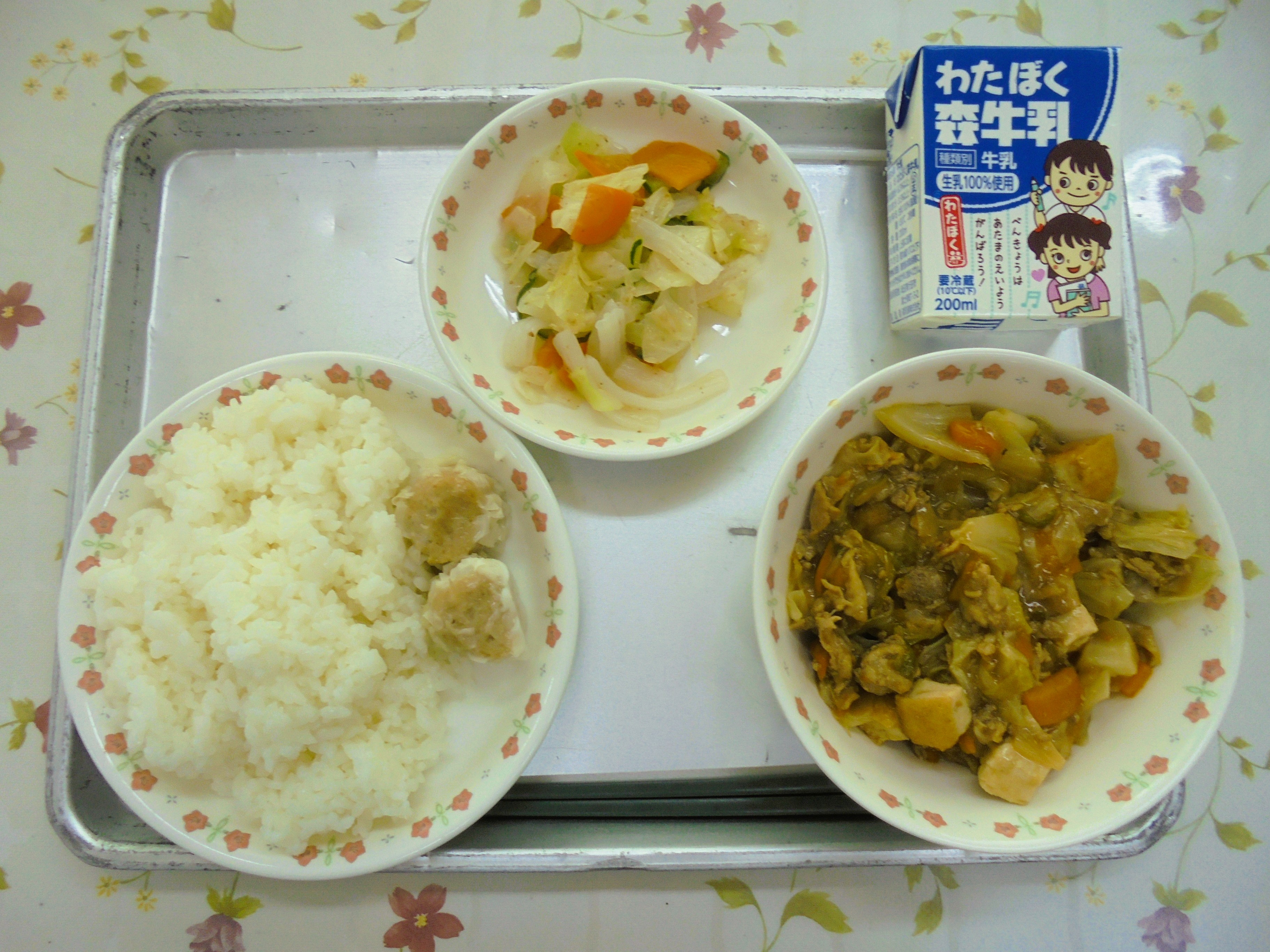 ・牛乳 ・ありのみカレー ・ありのみチキンソテー ・キャベツとコーンのサラダ |