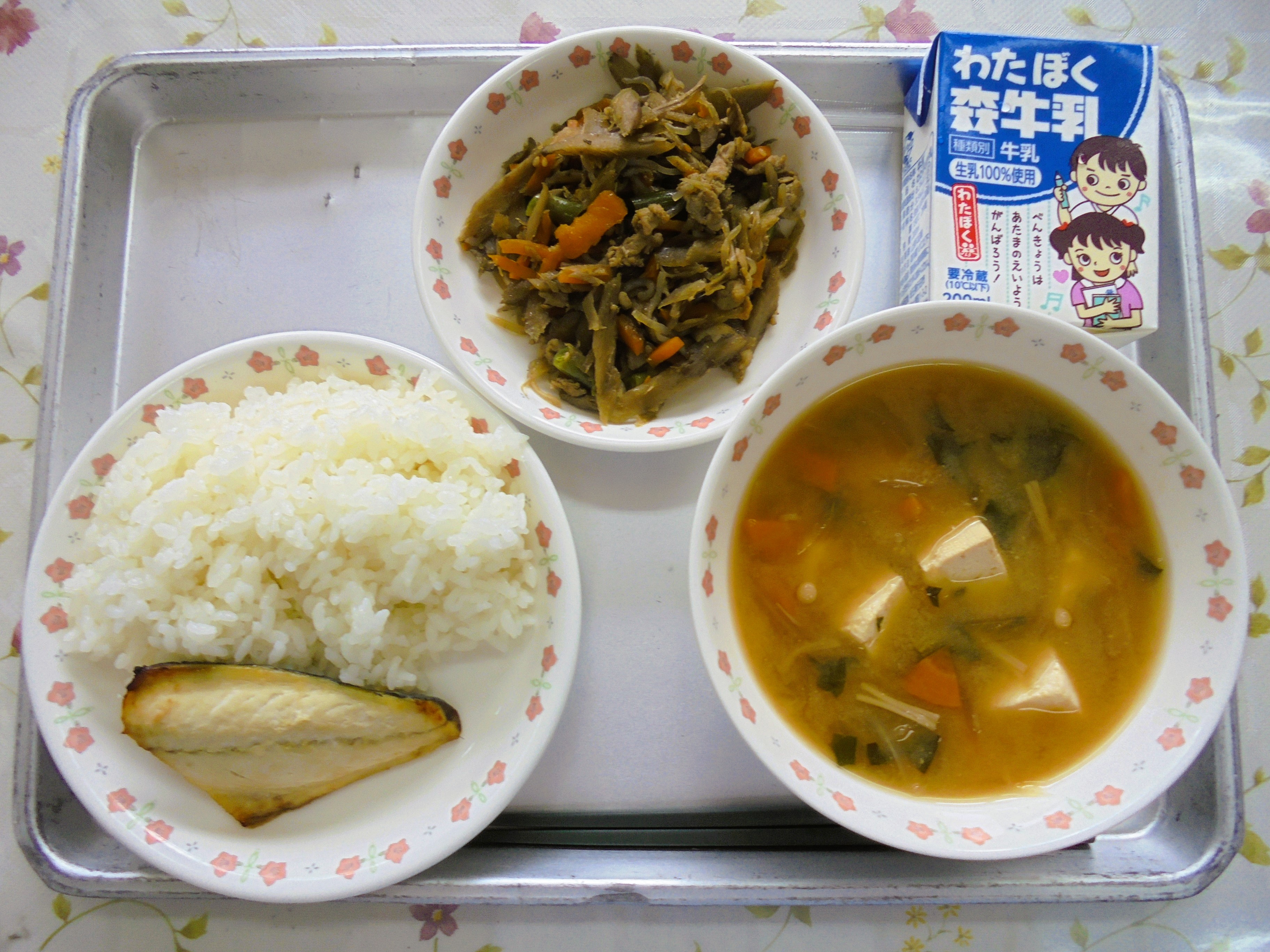 ・牛乳 ・ごはん ・玉ねぎのみそ汁 ・さばの生姜焼き ・きんぴらごぼう |