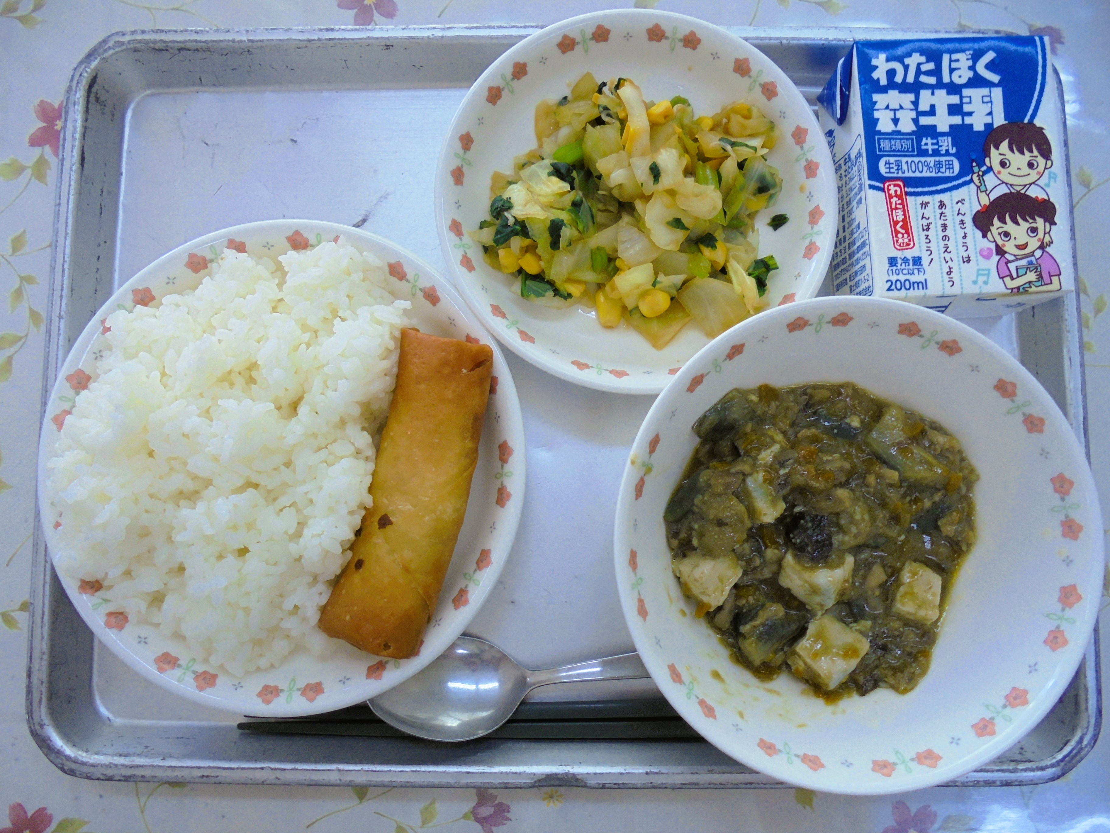 ・牛乳 ・ごはん ・マーボーなす ・春巻き ・じゃこサラダ |